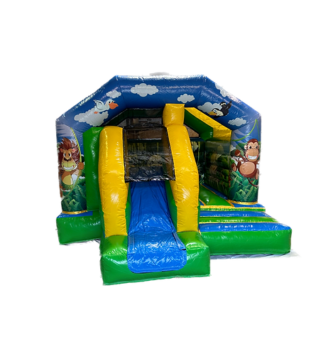 Sorgen Sie für strahlende Kinderaugen mit unserer Hüpfburgen "Dschungel mit Rutsche"und Hüpfburg "Affe" – die ideale Attraktion für Kindergeburtstage, Kindertage, Familienfeste, Hochzeiten oder andere Anlässe, bei denen die kleinen Gäste gut unterhalten werden sollen.